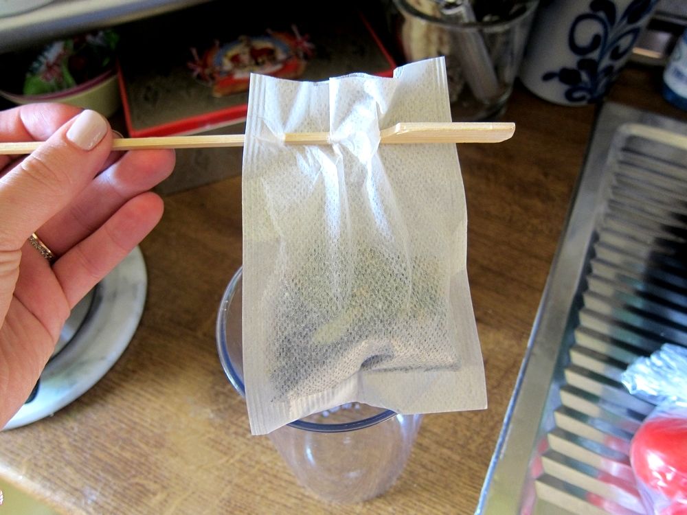 | Spießt den Teebeutel auf, dann geht er euch im Messbecher nicht unter. :-) |